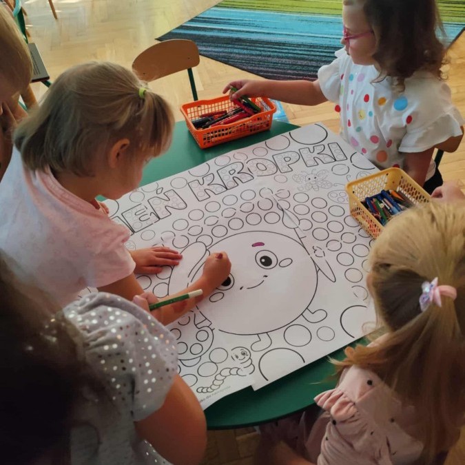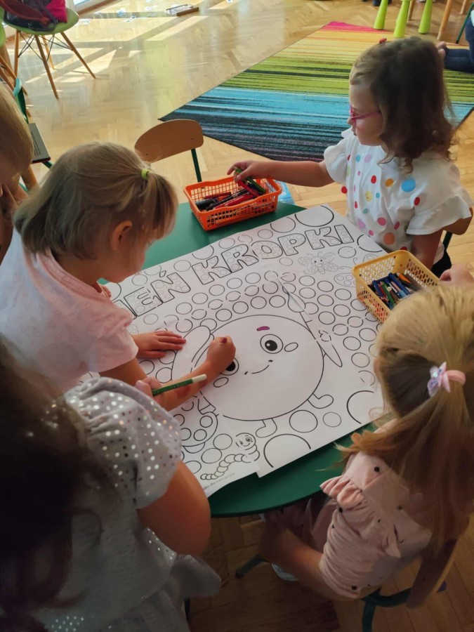 15 września nasze przedszkolaki świętowały Dzień Kropki- dzień odwagi , kreatywności i odkrywania swoich talentów. Były kolorowe kropkowe stroje, prace plastyczne, zabawy ruchowe i mnóstwo radości.