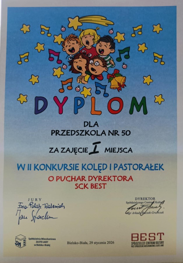 Świetliki wzięły udział w II Konkursie Kolęd i Pastorałek o Puchar Dyrektora SCK Best. Nasi kolędnicy zajęli I miejsce.