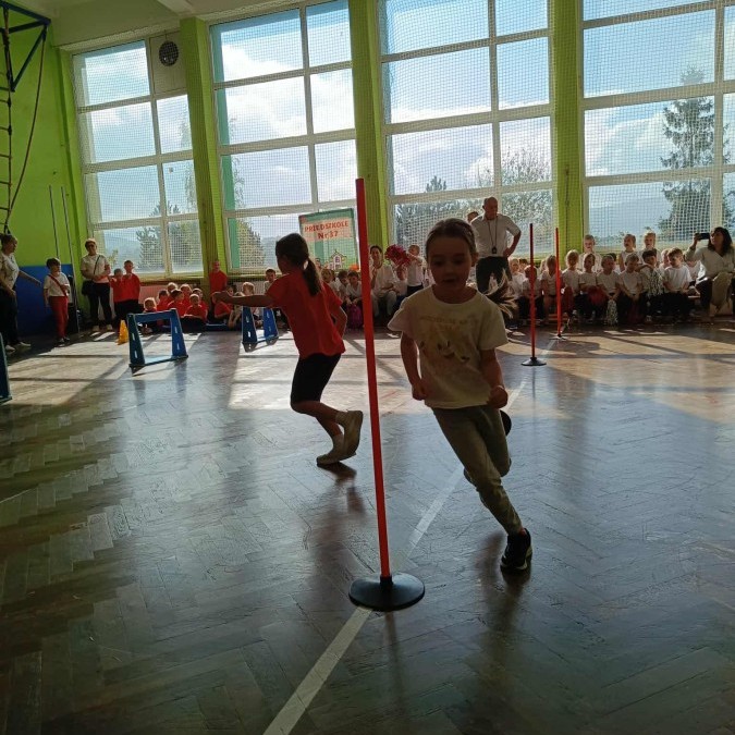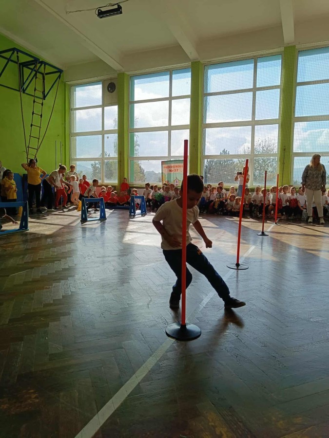 sztafecie z przeszkodami- to była pełna emocji rywalizacja drużyn z różnych przedszkoli.