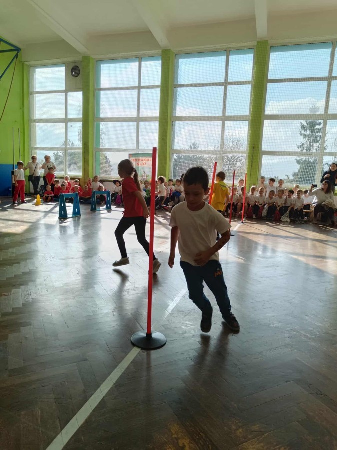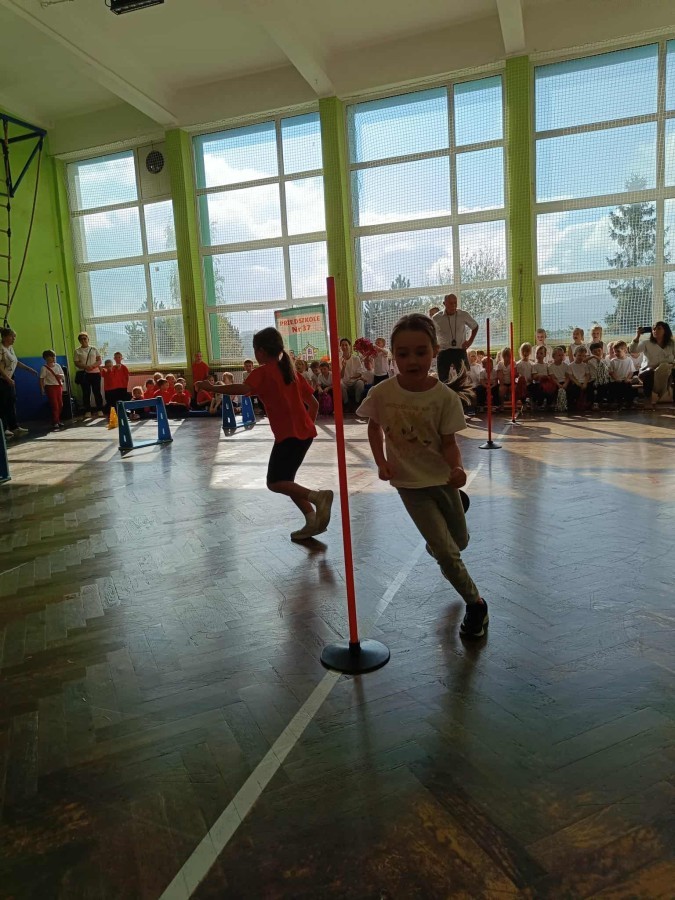 biegu- wszyscy mali sportowcy pokazali szybkość i zwinność