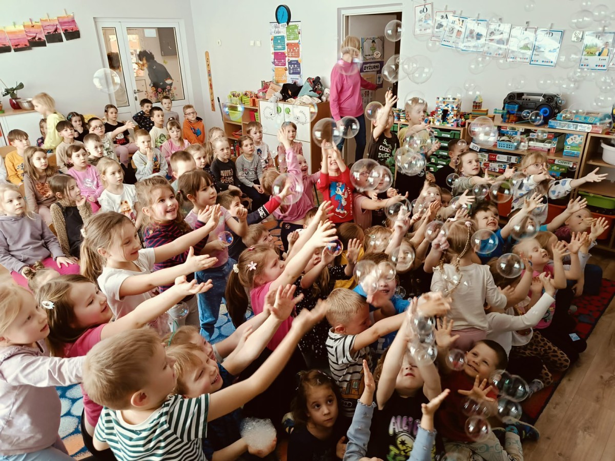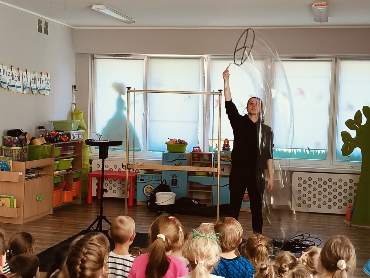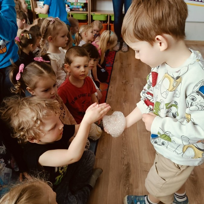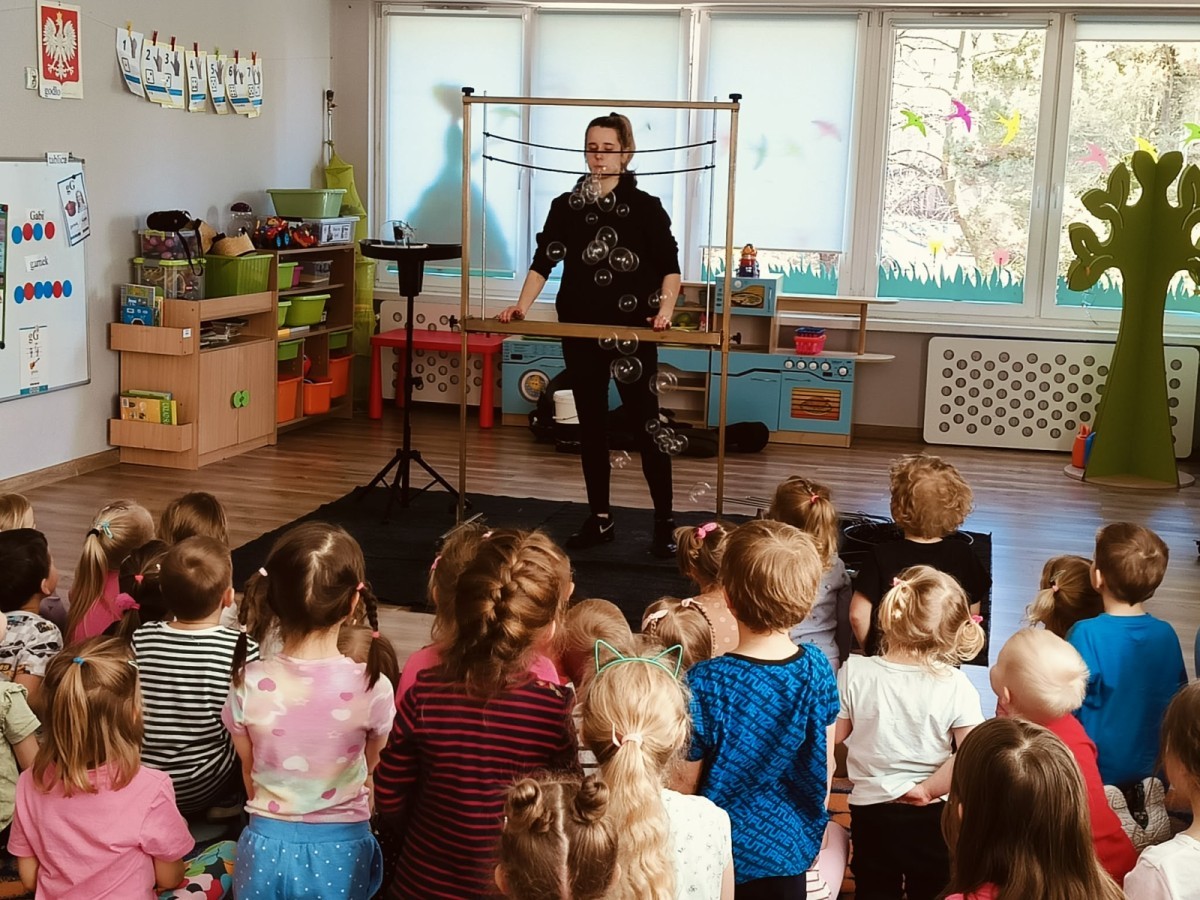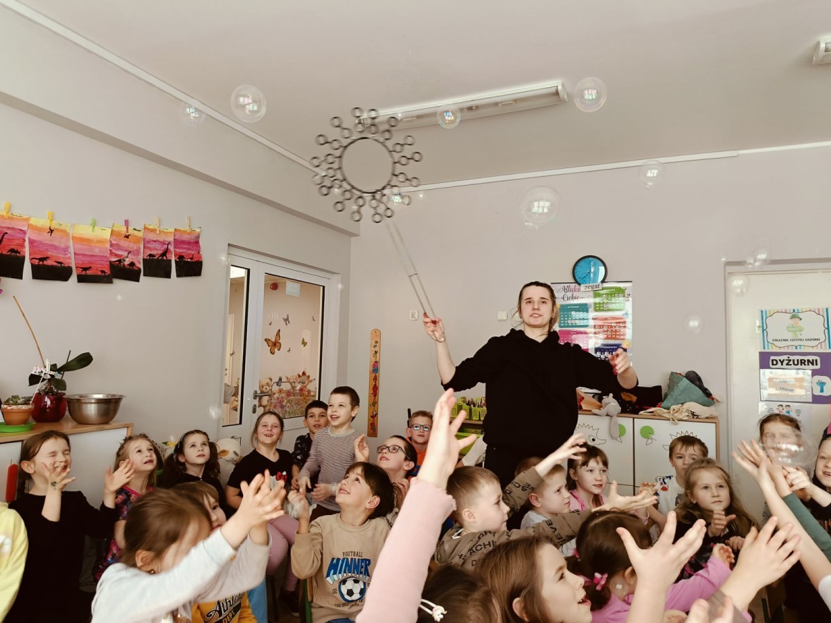 6 marca mieliśmy okazję obejrzeć w naszym przedszkolu Bubble Show 🫧 Czyli niezwykły pokaz artystycznych umiejętności przy wykorzystaniu baniek mydlanych.