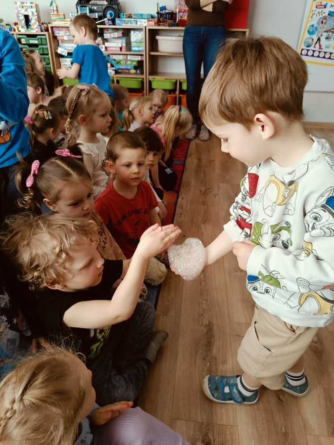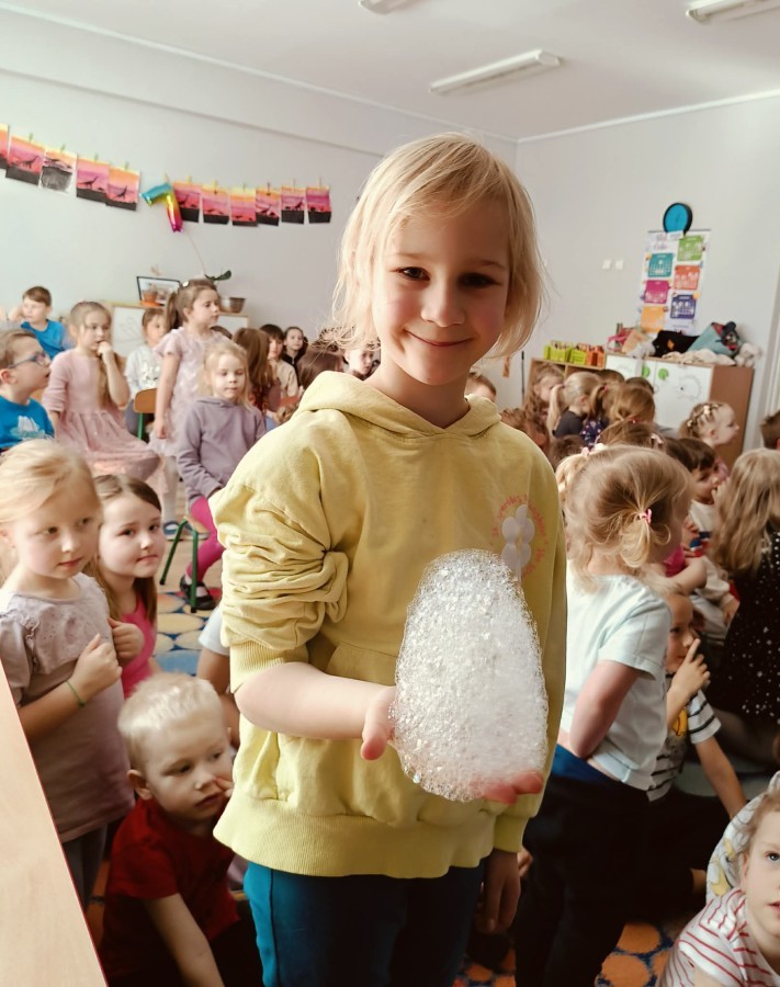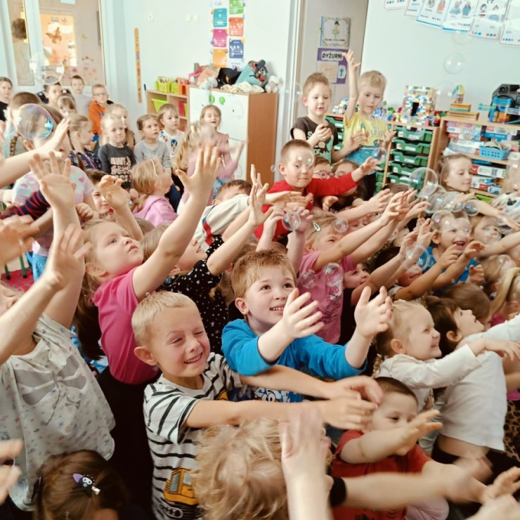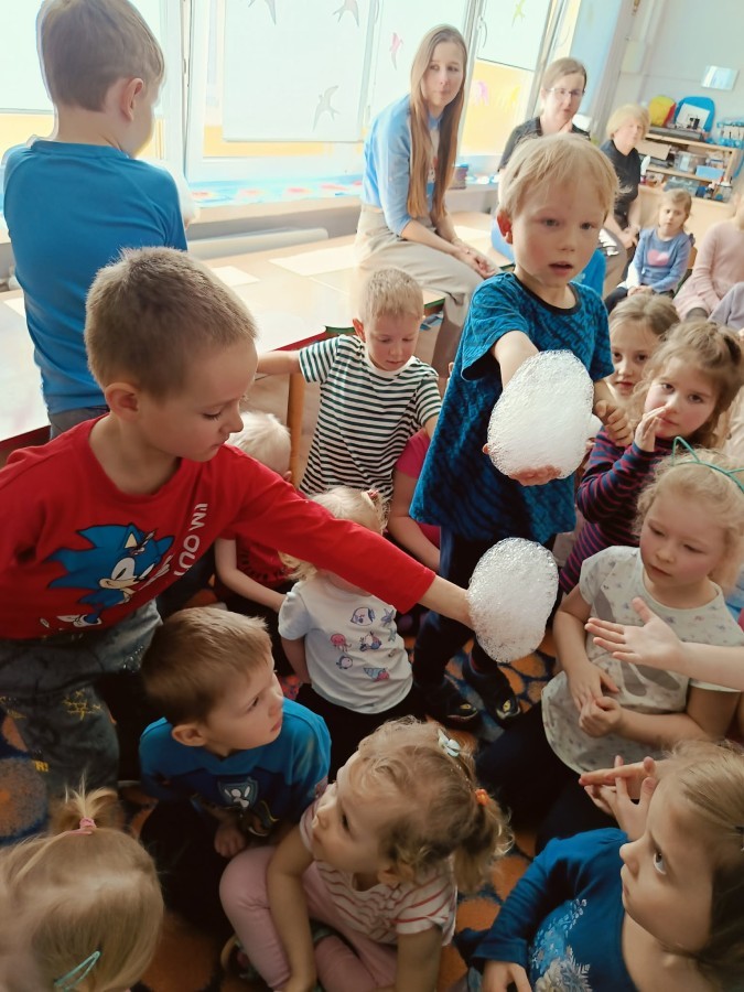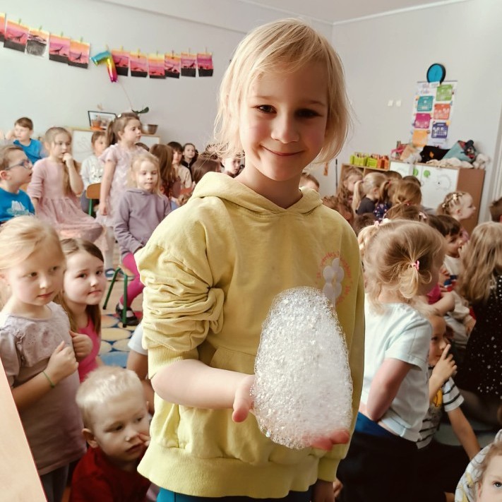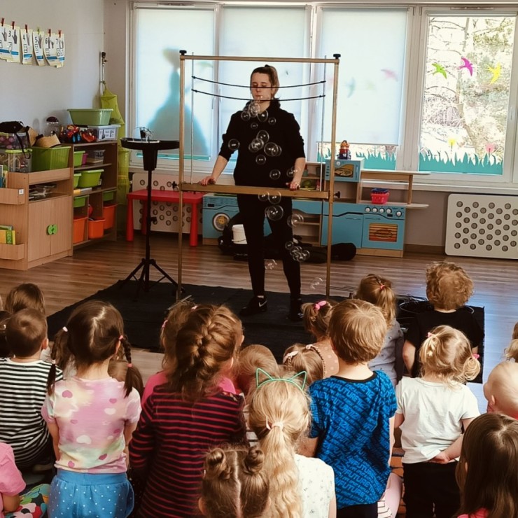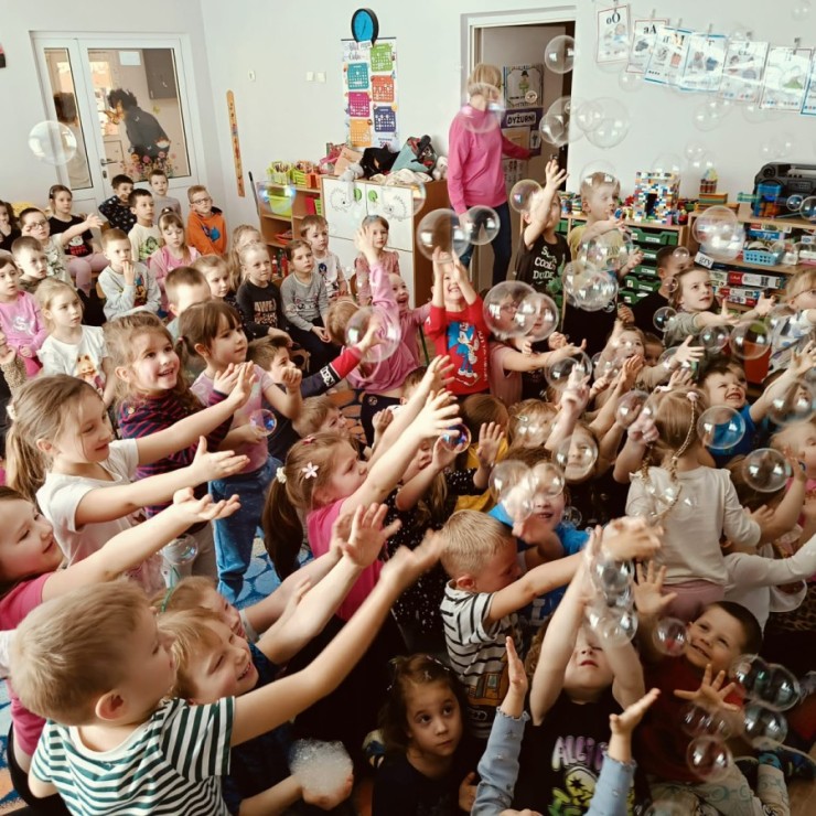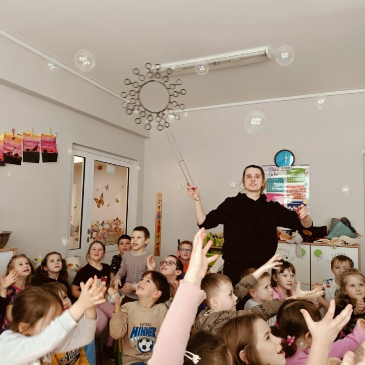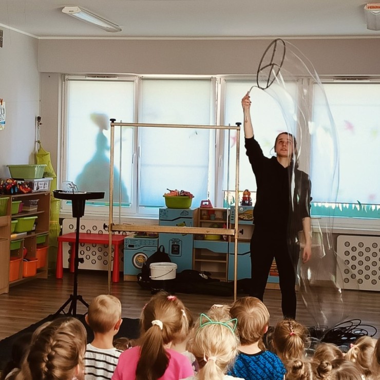 6 marca mieliśmy okazję obejrzeć w naszym przedszkolu Bubble Show 🫧 Czyli niezwykły pokaz artystycznych umiejętności przy wykorzystaniu baniek mydlanych.