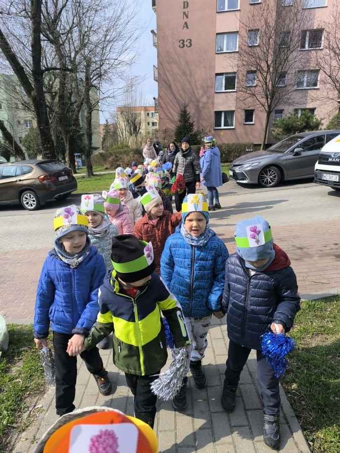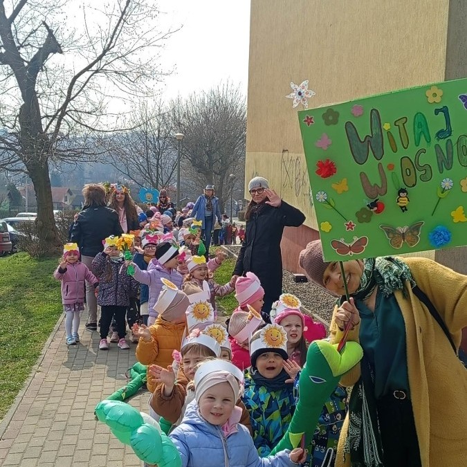 20 marca wspólnie z Przedszkolem nr 24 wyruszyliśmy na radosny korowód, aby powitać wiosnę 🌼 Było kolorowo i radośnie! Dzieci z uśmiechem maszerowały, niosąc wiosenne ozdoby i śpiewając wiosenne piosenki🌼☀️🦋