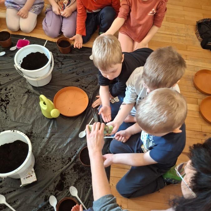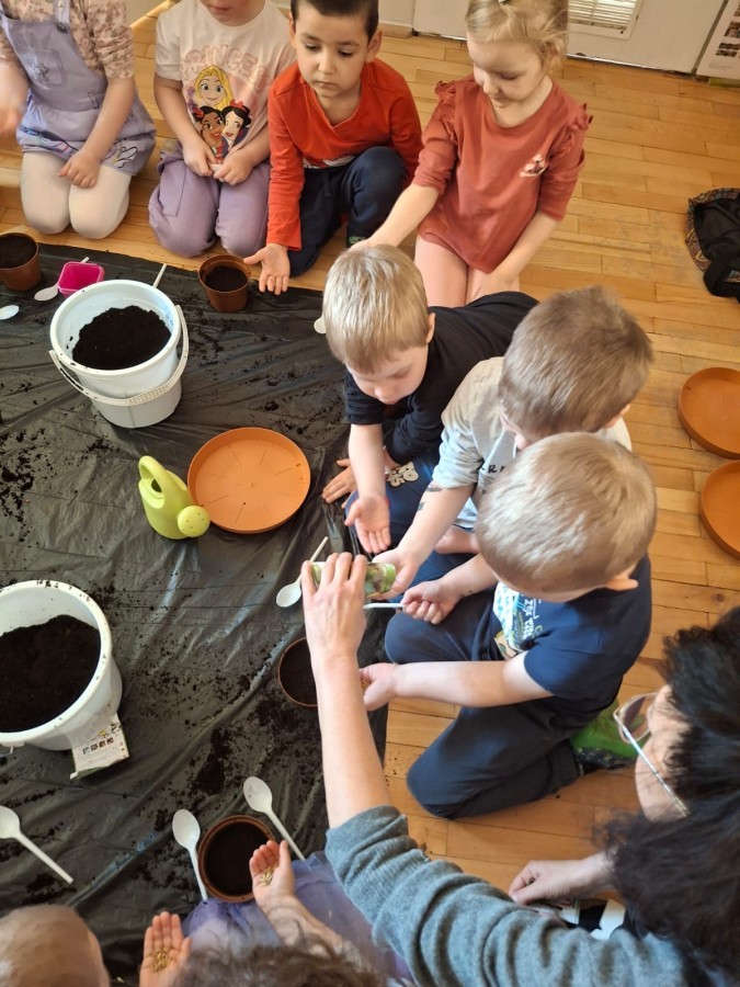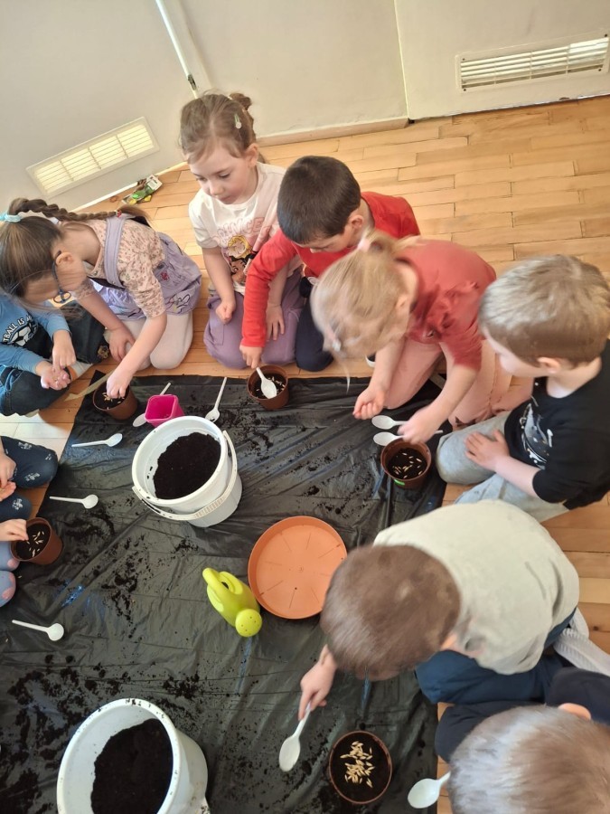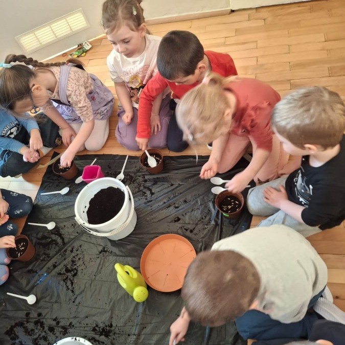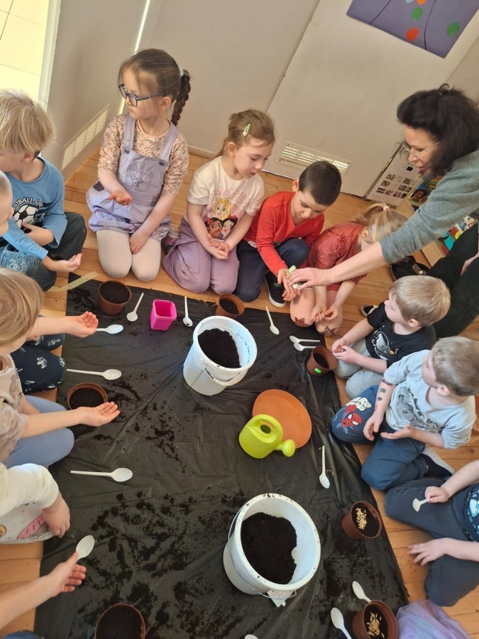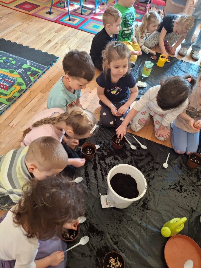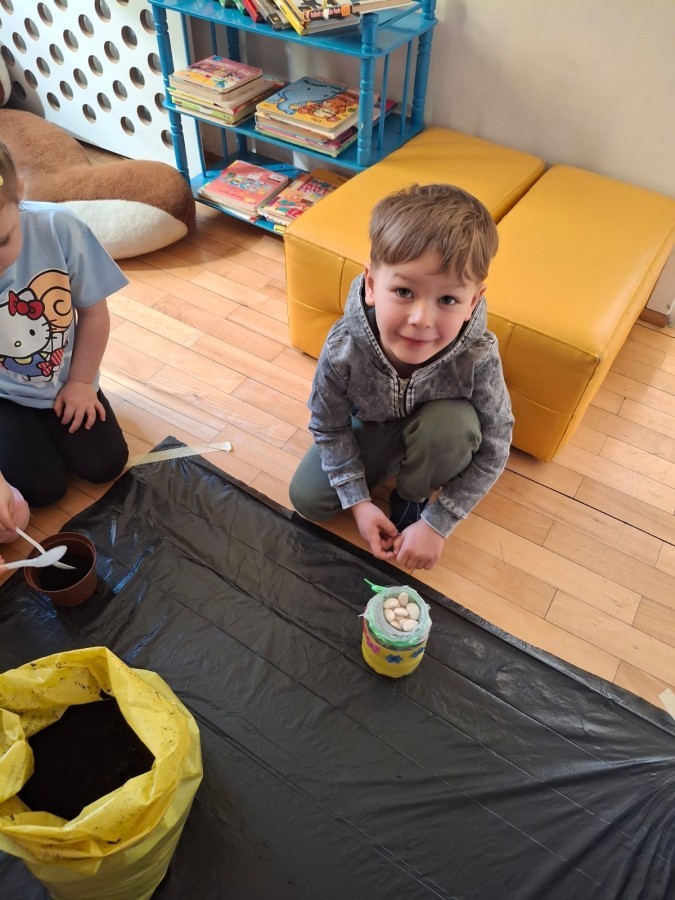 Gwiazdeczki bawiły się w ogrodników. Z wielkim zaangażowaniem sadziły owies, rzeżuchę oraz fasolę, a teraz dbają o nie każdego dnia i obserwują, jak kiełkują 🌱